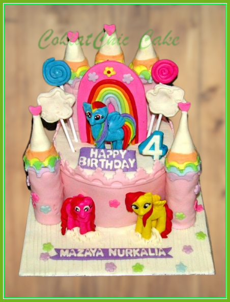 Birthday Cake dengan tema My Little Pony Castle, model tersebut mulai ukuran 15 cm , daftar harga kue ulang tahun https://coklatchiccake.com/daftar-harga-2