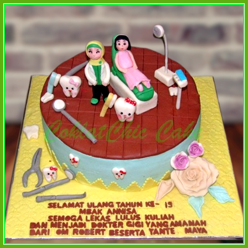 Birthday Cake dengan tema Dokter Gigi , model tersebut mulai ukuran 30 cm , daftar harga kue ulang tahun https://coklatchiccake.com/daftar-harga-2