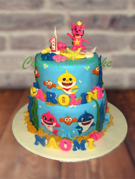 Birthday Cake tema Baby Shark , model tersebut mulai ukuran 20 cm dan 15 cm , daftar harga kue ulang tahun https://coklatchiccake.com/daftar-harga-2