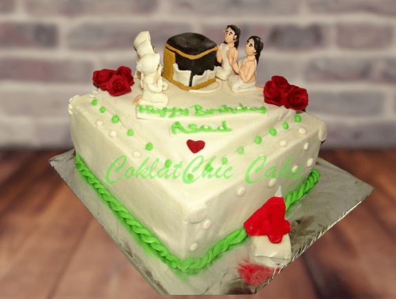 Birthday Cake dengan tema Umrah , model tersebut mulai ukuran 20 cm , daftar harga kue ulang tahun https://coklatchiccake.com/daftar-harga-2