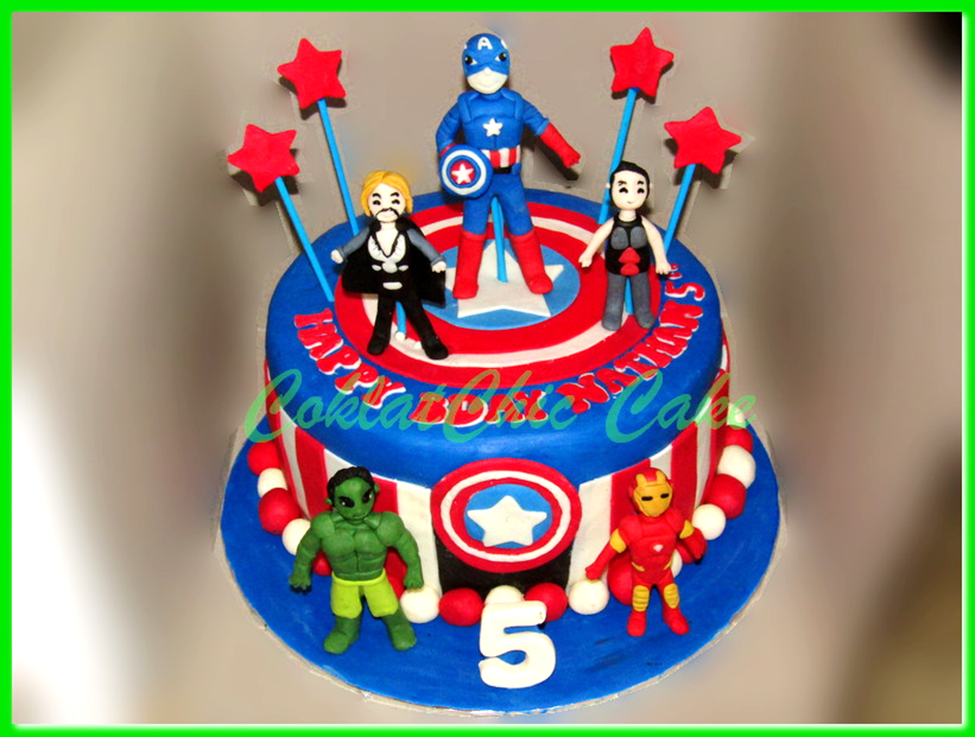 Birthday Cake dengan tema the Avengers, model tersebut mulai ukuran 24 cm , daftar harga kue ulang tahun https://coklatchiccake.com/daftar-harga-2