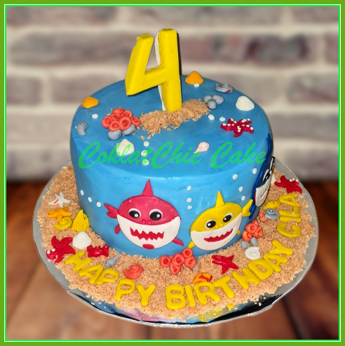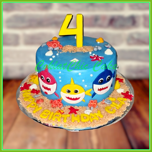 Birthday Cake dengan tema Baby Shark , model tersebut mulai ukuran 15 cm , daftar harga kue ulang tahun https://coklatchiccake.com/daftar-harga-2