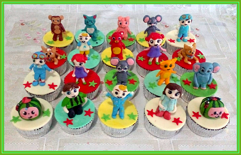 Cupcake set dengan tema Cocomelon , daftar harga kue ulang tahun https://coklatchiccake.com/daftar-harga-2