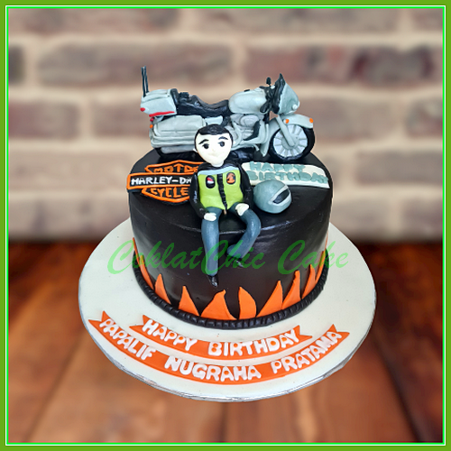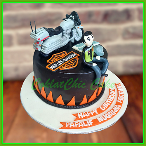 Birthday Cake dengan tema Motor Harley Davidson , model tersebut mulai ukuran 15 cm, daftar harga kue ulang tahun https://coklatchiccake.com/daftar-harga-2