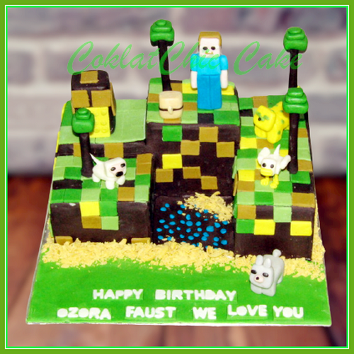 Birthday Cake dengan tema Minecraft, model tersebut mulai ukuran 15 cm , daftar harga kue ulang tahun https://coklatchiccake.com/daftar-harga-2