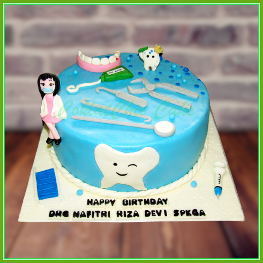 Birthday Cake dengan tema dokter gigi, model tersebut mulai ukuran 30 cm, daftar harga kue ulang tahun https://coklatchiccake.com/daftar-harga-2