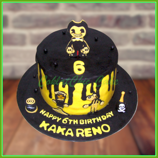 Birthday Cake dengan tema Bendy and The Ink Machine, model tersebut mulai ukuran 15 cm, daftar harga kue ulang tahun https://coklatchiccake.com/daftar-harga-2
