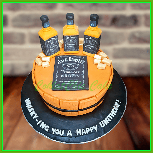 Birthday Cake dengan tema minuman keras Jack Daniels, model tersebut mulai ukuran 15 cm, daftar harga kue ulang tahun https://coklatchiccake.com/daftar-harga-2