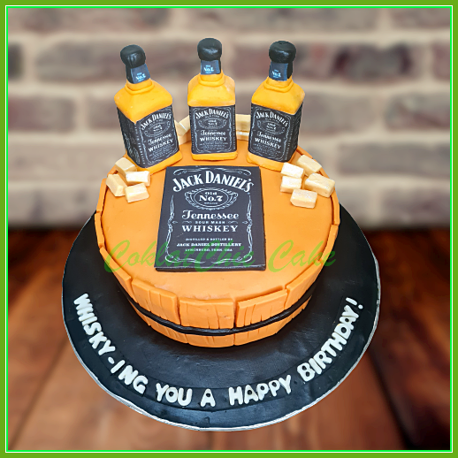 Birthday Cake dengan tema minuman keras Jack Daniels, model tersebut mulai ukuran 15 cm, daftar harga kue ulang tahun https://coklatchiccake.com/daftar-harga-2