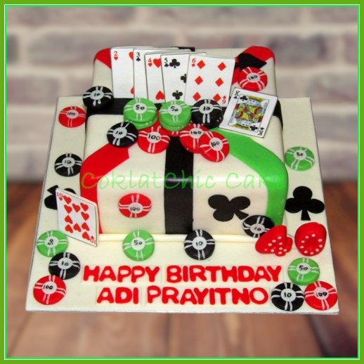 Birthday Cake dengan tema Kartu dan Token Casino, model tersebut mulai ukuran 20 cm, daftar harga kue ulang tahun https://coklatchiccake.com/daftar-harga-2