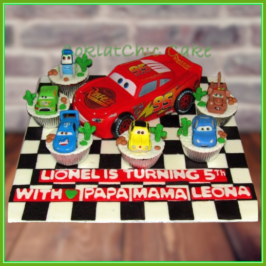 Birthday Cake dan cupcake dengan tema Disney cars, model tersebut mulai ukuran 22 cm, daftar harga kue ulang tahun https://coklatchiccake.com/daftar-harga-2
