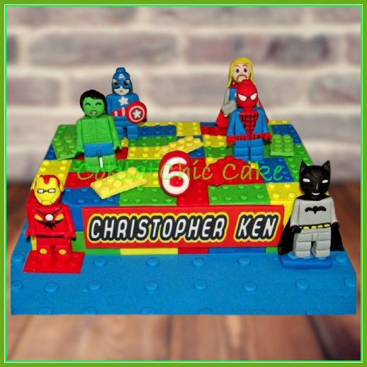 Birthday Cake dengan tema Lego Superhero, model tersebut mulai ukuran 18×27 cm, daftar harga kue ulang tahun https://coklatchiccake.com/daftar-harga-2