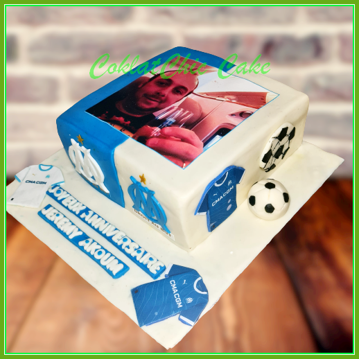 Birthday Cake edible photo dengan tema Olympique Marseille, model tersebut mulai ukuran 15 cm , daftar harga kue ulang tahun https://coklatchiccake.com/daftar-harga-2