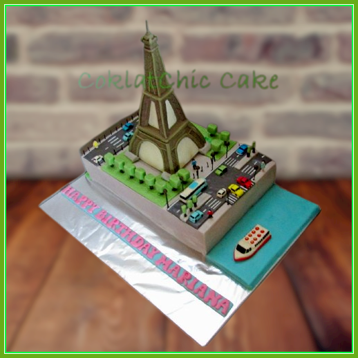 Birthday Cake dengan tema Eiffel Tower, model tersebut mulai ukuran 15 cm, daftar harga kue ulang tahun https://coklatchiccake.com/daftar-harga-2