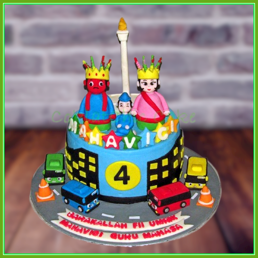 Birthday Cake dengan tema ondel-ondel di Monas dan Tayo, model tersebut mulai ukuran 15 cm, daftar harga kue ulang tahun https://coklatchiccake.com/daftar-harga-2