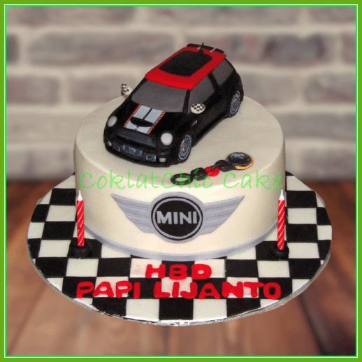 Birthday Cake dengan tema mobil Mini Cooper, model tersebut mulai ukuran 15 cm, daftar harga kue ulang tahun https://coklatchiccake.com/daftar-harga-2