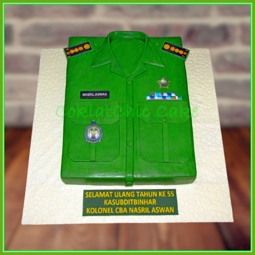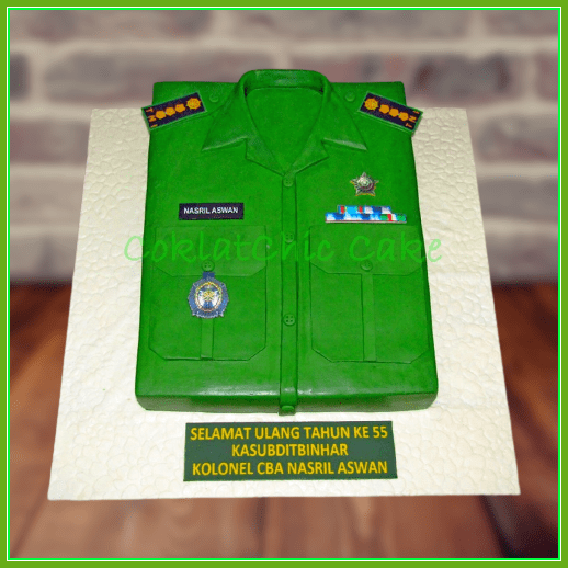 Birthday Cake dengan tema baju tentara, model tersebut mulai ukuran 50 cm, daftar harga kue ulang tahun https://coklatchiccake.com/daftar-harga-2