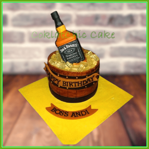 Birthday Cake dengan tema Jack Daniels, model tersebut mulai ukuran 15 cm, daftar harga kue ulang tahun https://coklatchiccake.com/daftar-harga-2