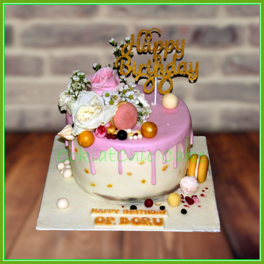 Birthday Cake dengan tema custom flowers, model tersebut mulai ukuran 20 cm, daftar harga kue ulang tahun https://coklatchiccake.com/daftar-harga-2