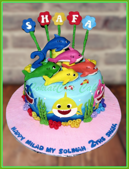 Birthday Cake dengan tema Baby Shark , model tersebut mulai ukuran 20 cm , daftar harga kue ulang tahun https://coklatchiccake.com/daftar-harga-2