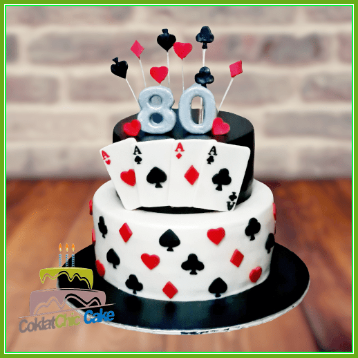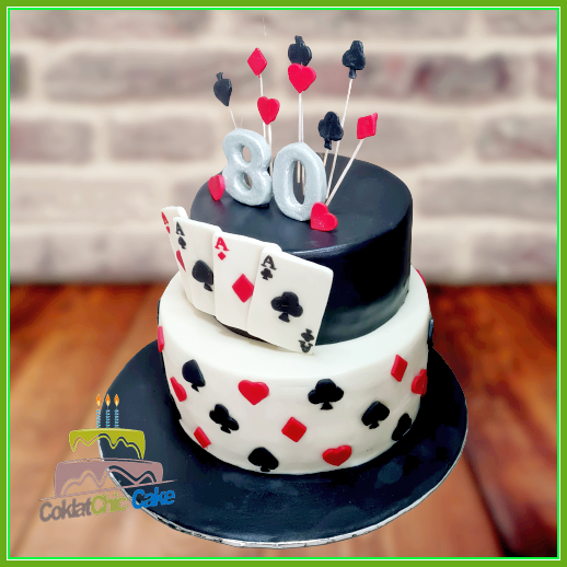 Birthday Cake dengan tema kartu remi, model tersebut mulai ukuran 18 cm dan 12 cm , daftar harga kue ulang tahun https://coklatchiccake.com/daftar-harga-2