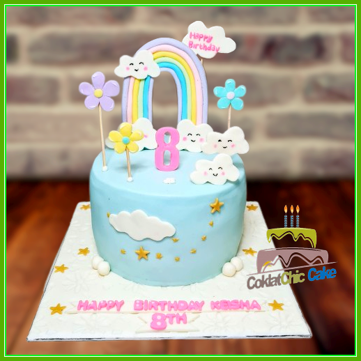 Birthday Cake dengan tema Stars,Rainbow and Clouds, model tersebut mulai ukuran 15 cm tinggi , daftar harga kue ulang tahun https://coklatchiccake.com/daftar-harga-2