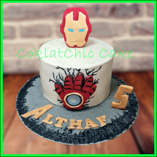 Birthday Cake dengan tema Ironman, model tersebut mulai ukuran 18 cm, daftar harga kue ulang tahun https://coklatchiccake.com/daftar-harga-2