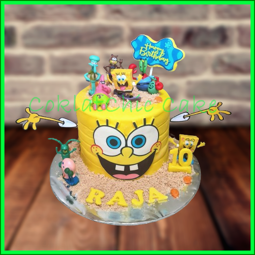 Birthday Cake dengan tema Spongebob, model tersebut mulai ukuran 15 cm tinggi, daftar harga kue ulang tahun https://coklatchiccake.com/daftar-harga-2