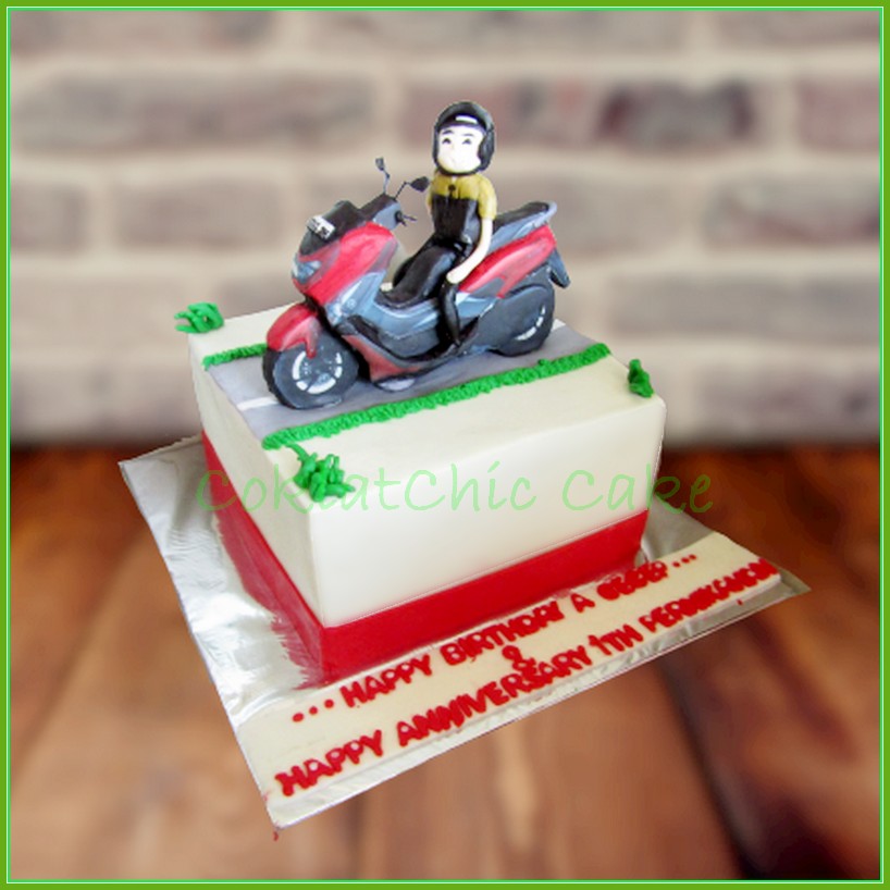 Birthday Cake dengan tema motor Yamaha NMax, model tersebut mulai ukuran 18 cm , daftar harga kue ulang tahun https://coklatchiccake.com/daftar-harga-2
