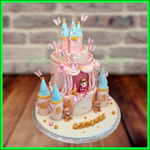 Birthday Cake dengan tema Castle Baby Princes, model tersebut mulai ukuran 15 cm dan 12 cm , daftar harga kue ulang tahun https://coklatchiccake.com/daftar-harga-2