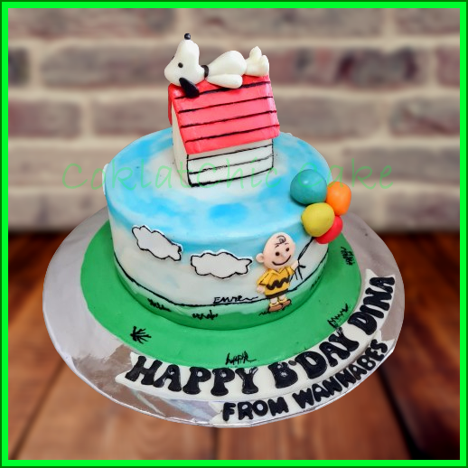 Birthday Cake dengan tema Snoopy, model tersebut mulai ukuran 15 cm , daftar harga kue ulang tahun https://coklatchiccake.com/daftar-harga-2