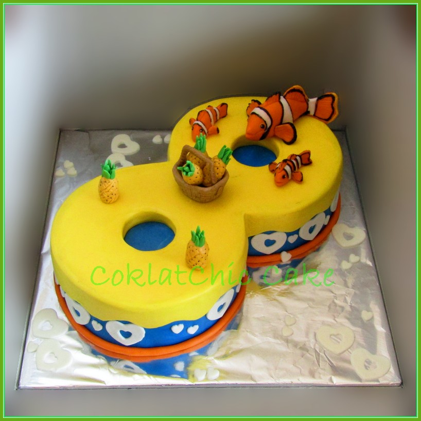 Birthday Cake angka 8 dengan tema nemo dan nenas, model tersebut mulai ukuran 15 cm, daftar harga kue ulang tahun https://coklatchiccake.com/daftar-harga-2