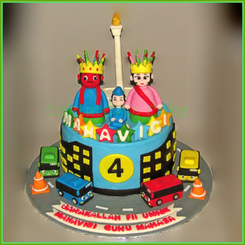 Birthday Cake dengan tema ondel-ondel di Monas dan Tayo, model tersebut mulai ukuran 15 cm, daftar harga kue ulang tahun https://coklatchiccake.com/daftar-harga-2