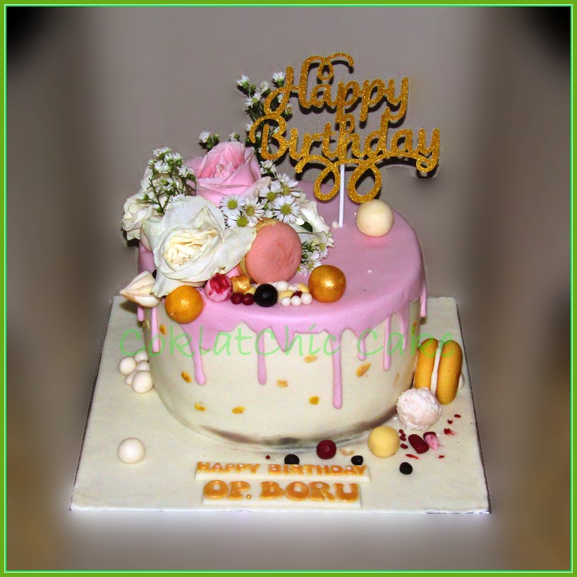 Birthday Cake dengan tema custom flowers, model tersebut mulai ukuran 20 cm, daftar harga kue ulang tahun https://coklatchiccake.com/daftar-harga-2