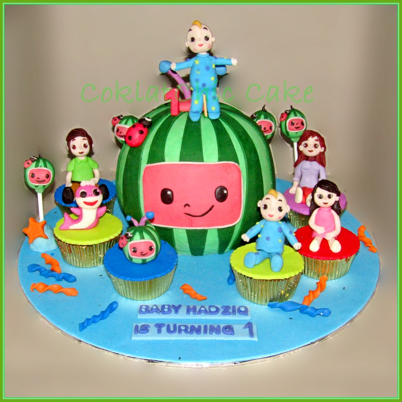 Birthday Cake dengan tema Cocomelon, model tersebut mulai ukuran 15 cm, daftar harga kue ulang tahun https://coklatchiccake.com/daftar-harga-2
