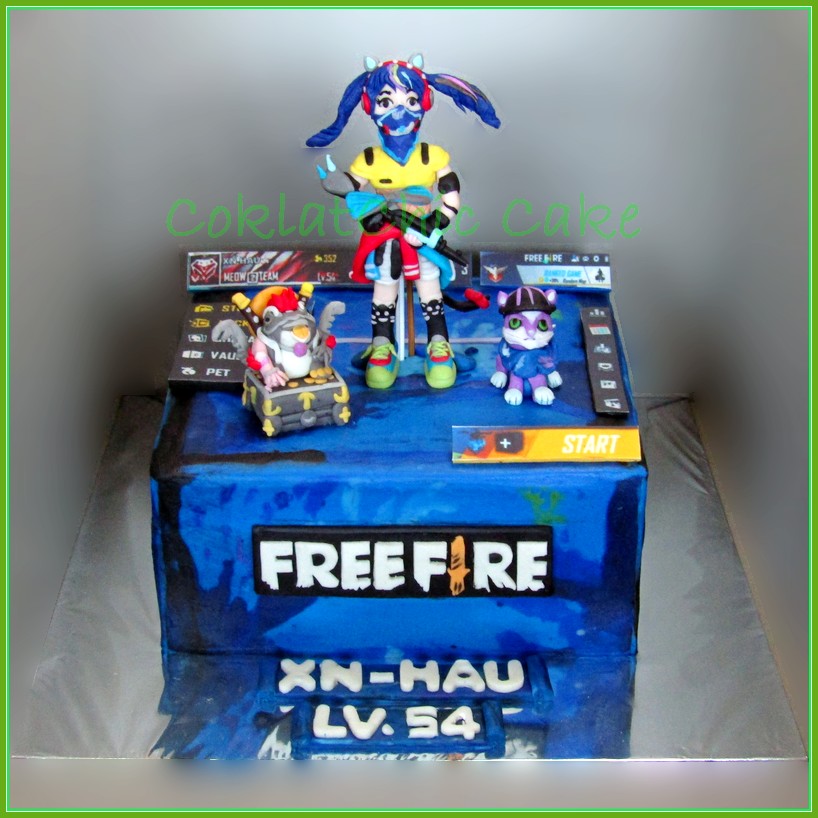 Birthday Cake dengan tema game Free Fire, model tersebut mulai ukuran 20 cm, daftar harga kue ulang tahun https://coklatchiccake.com/daftar-harga-2