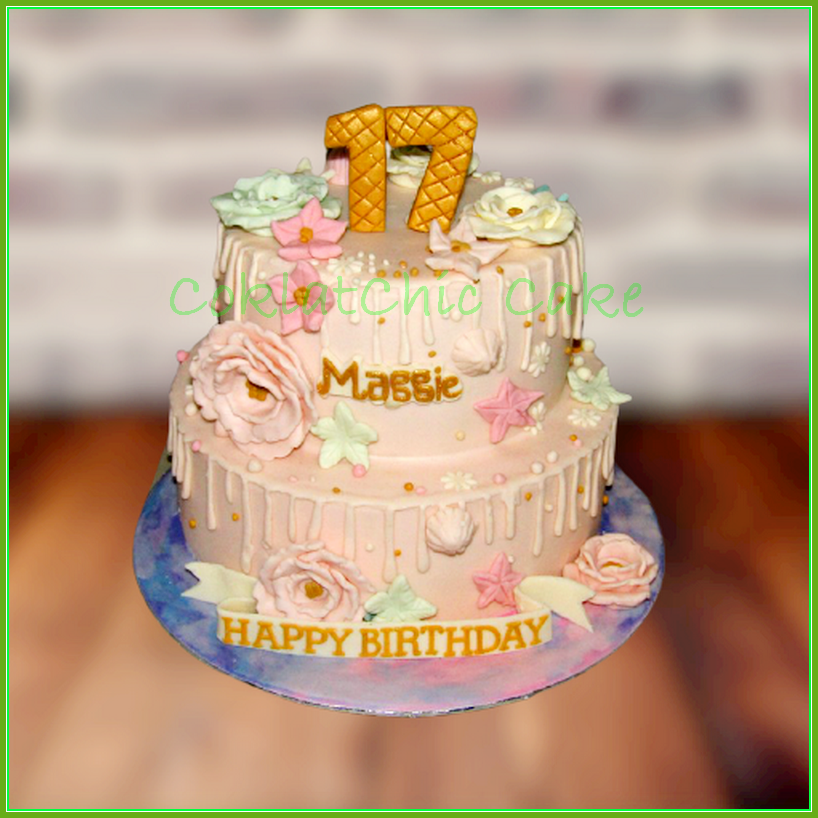 Birthday Cake dengan tema flowers, model tersebut mulai ukuran 20 cm dan 24 cm, daftar harga kue ulang tahun https://coklatchiccake.com/daftar-harga-2