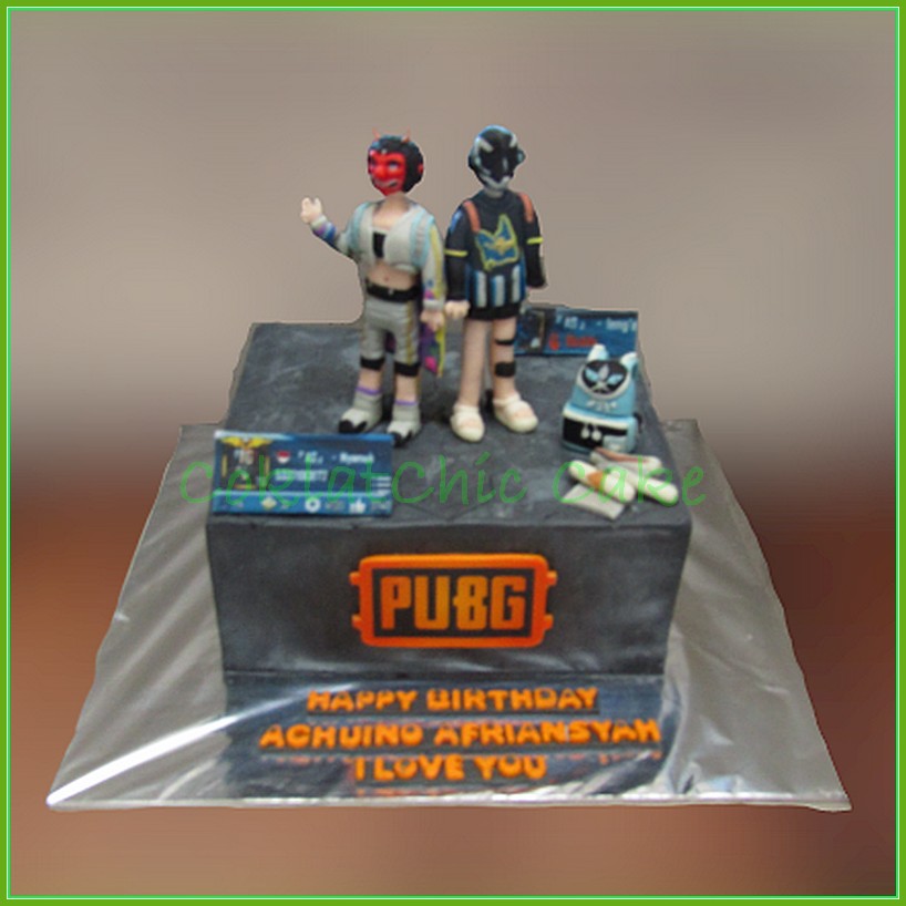 Birthday Cake dengan tema PUBG, model tersebut mulai ukuran 20 cm, daftar harga kue ulang tahun https://coklatchiccake.com/daftar-harga-2