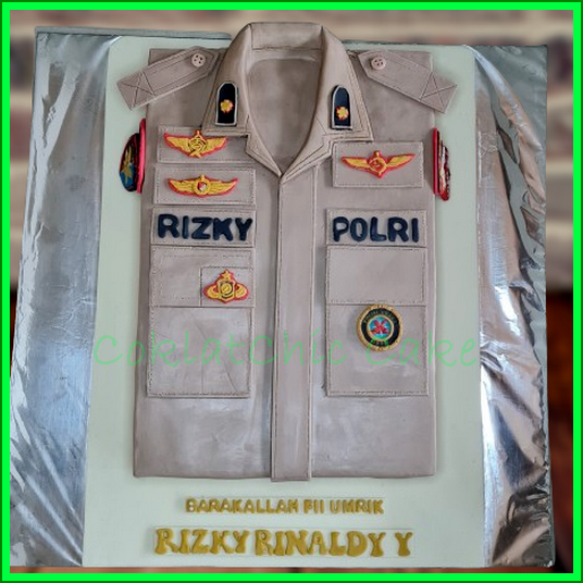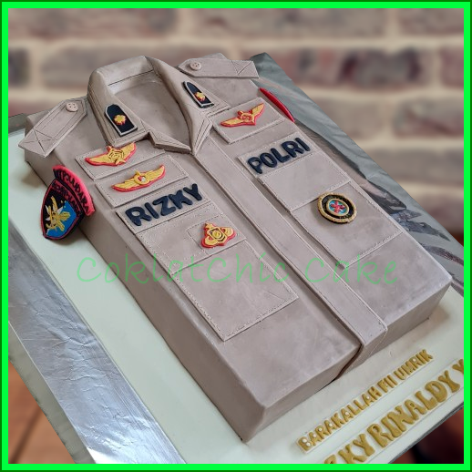 Birthday Cake dengan tema Baju Polisi, model tersebut mulai ukuran 24×36 cm, daftar harga kue ulang tahun https://coklatchiccake.com/daftar-harga-2