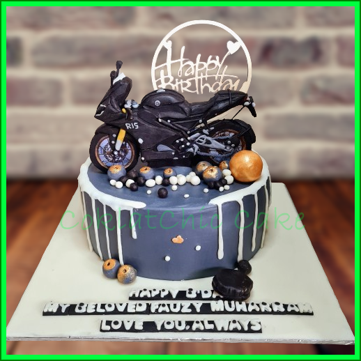 Birthday Cake dengan tema Motor Yamaha R15 , model tersebut mulai ukuran 20 cm, daftar harga kue ulang tahun https://coklatchiccake.com/daftar-harga-2