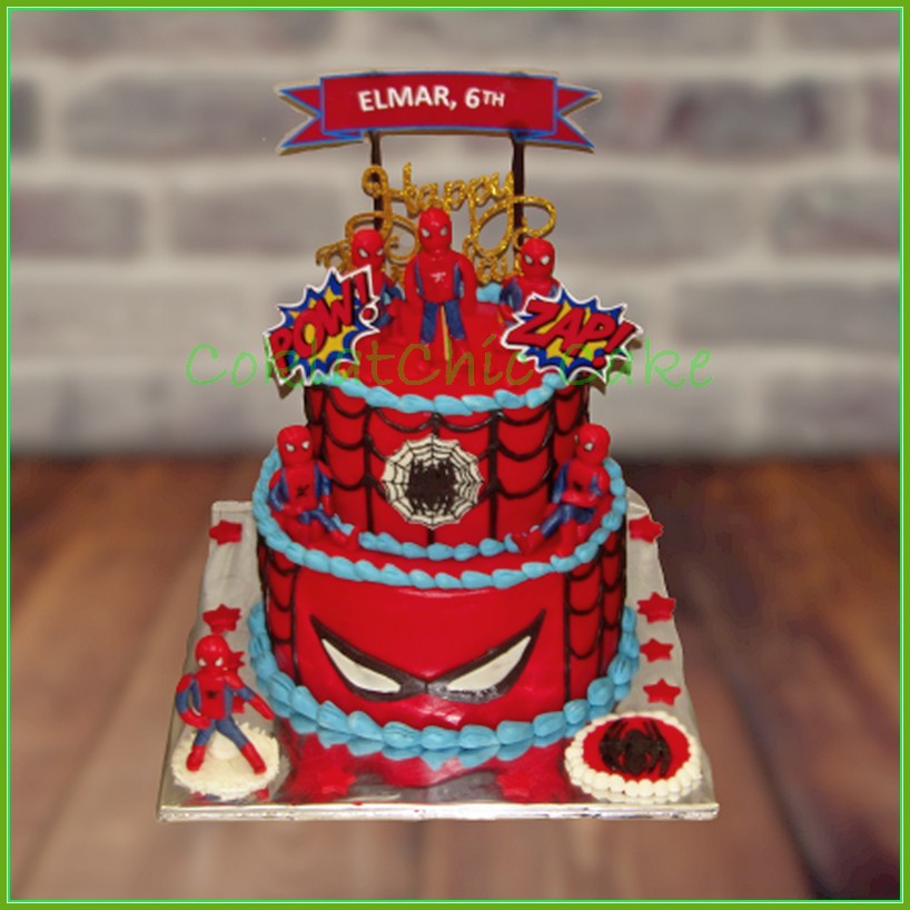 Birthday Cake dengan tema Spiderman, model ini mulai ukuran 18 cm dan 12 cm, daftar harga kue ulang tahun https://coklatchiccake.com/daftar-harga-2