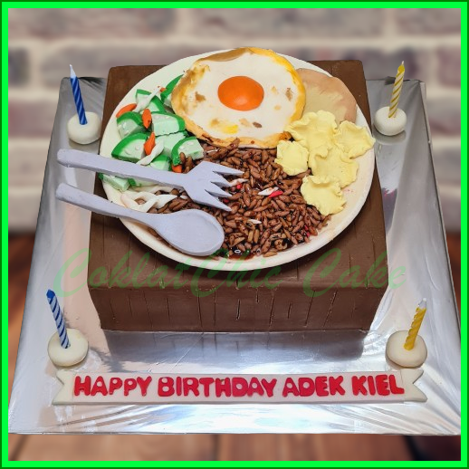 Terbuat dari cake yang dipahat, no styrofoam. Pelapis terbuat coklat bukan fondant atau sugar icing.