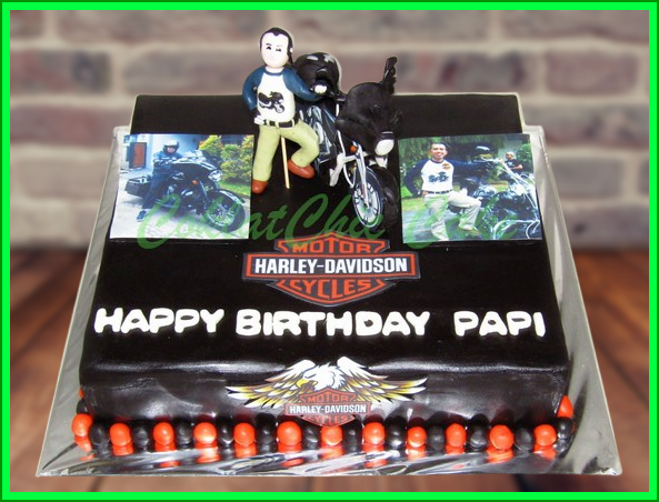 Birthday Cake dengan tema motor Harley Davidson, model tersebut mulai ukuran 30 cm , daftar harga kue ulang tahun https://coklatchiccake.com/daftar-harga-2
