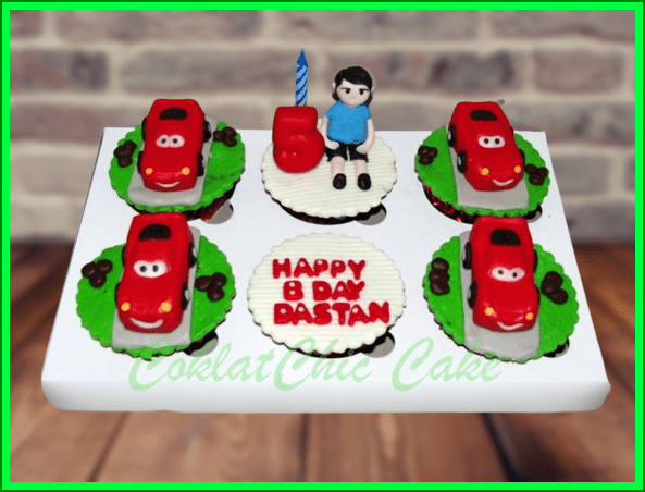 Birthday Cupcake set dengan tema Disney Cars, model tersebut mulai ukuran 6 cm , daftar harga kue ulang tahun https://coklatchiccake.com/daftar-harga-2