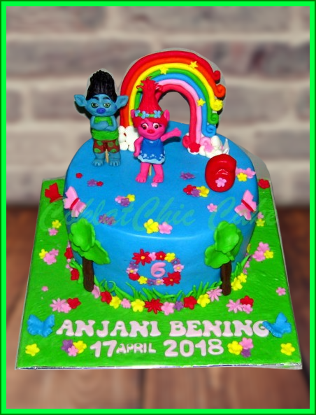 Birthday Cake dengan tema disney Trolls, model tersebut mulai ukuran 20 cm , daftar harga kue ulang tahun https://coklatchiccake.com/daftar-harga-2