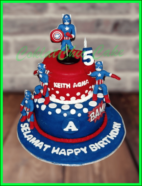 Birthday Cake dengan tema Captain America, model tersebut mulai ukuran 15 cm dan 12 cm, daftar harga kue ulang tahun https://coklatchiccake.com/daftar-harga-2