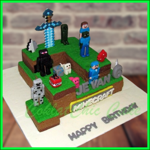 Birthday Cake dengan tema Minecraft, model tersebut mulai ukuran 22 cm , daftar harga kue ulang tahun https://coklatchiccake.com/daftar-harga-2