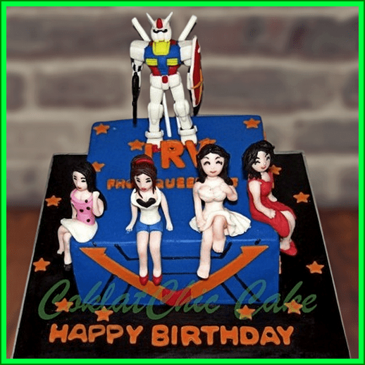 Birthday Cake dengan tema Gundam dan Sexy girls , model tersebut mulai ukuran 15 cm , daftar harga kue ulang tahun https://coklatchiccake.com/daftar-harga-2
