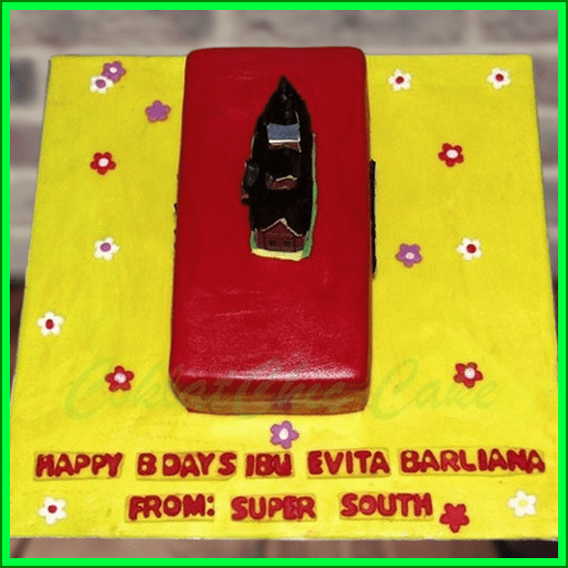 Terbuat dari cake yang dipahat, no styrofoam. Pelapis terbuat coklat bukan fondant atau sugar icing.