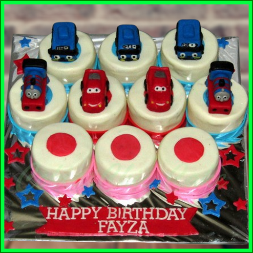Birthday Minicake dengan tema Tayo, Thomas dan Cars Mcqueen, model tersebut mulai ukuran 6 cm , daftar harga kue ulang tahun https://coklatchiccake.com/daftar-harga-2